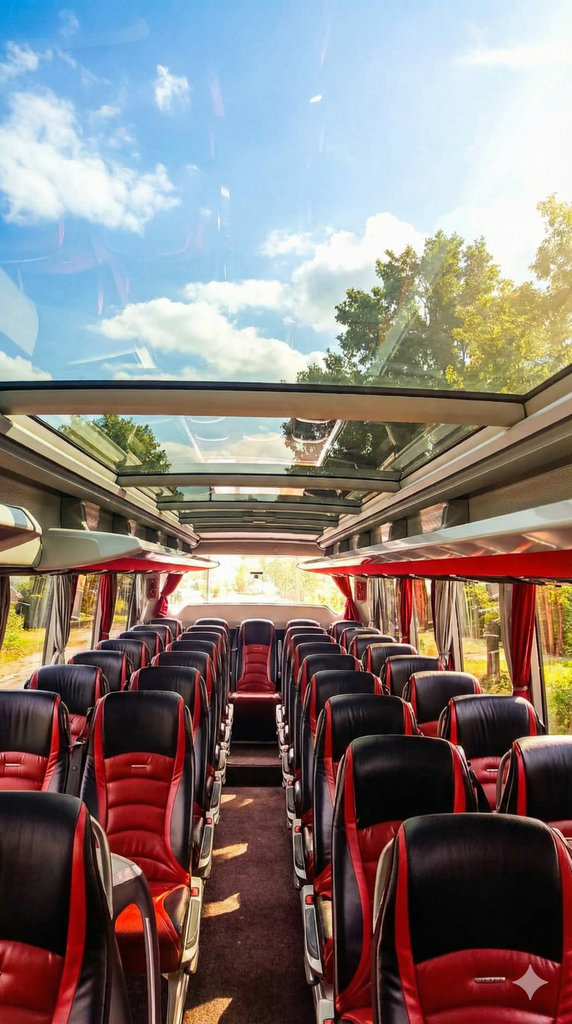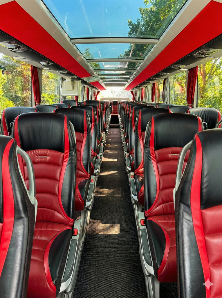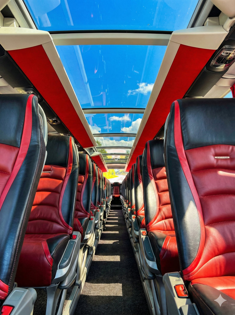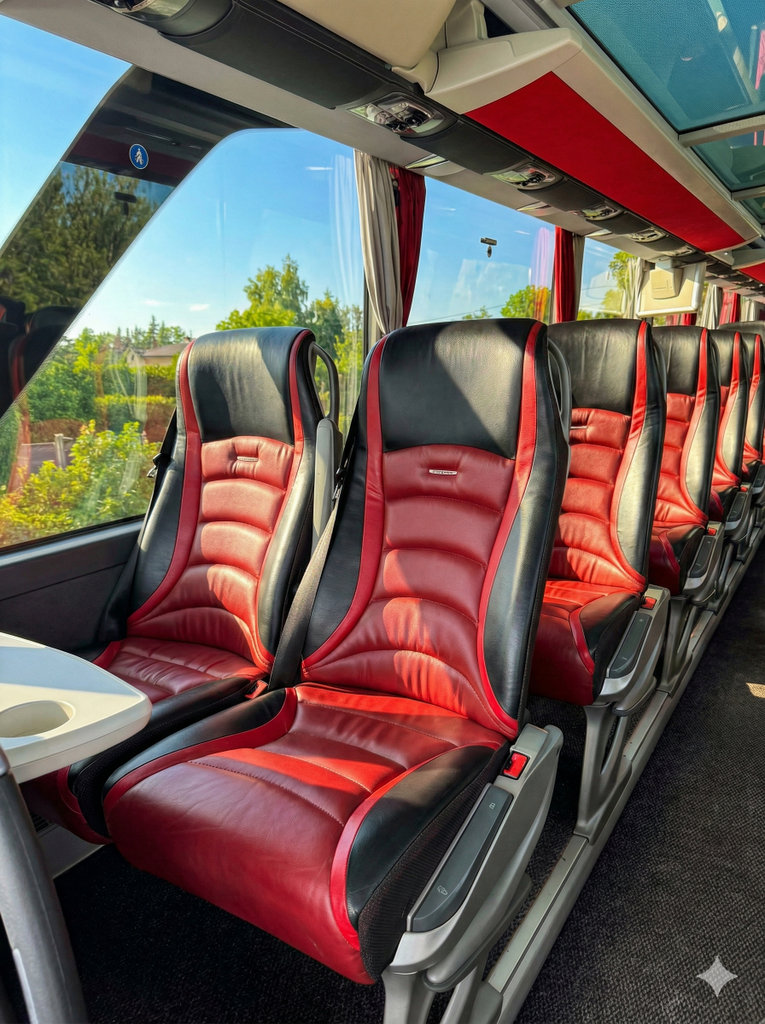 wygodne fotele rozchylane z pasami bezpieczeństwa i podnóżkami;